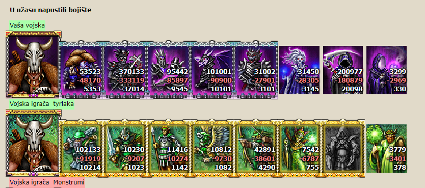 Everything seemed great, the allies were greatly outnumbered by the enemy until the moment when the dark leader Derrinel used his terror effect powers and thus stunned the vast amount of the army that retreated, but there was no turning back. they understood that if they lose the fight, the dark force will spread over all the kingdoms and cause them great harm, the remaining army gathered and fearlessly marched towards the enemy, tens of thousands of horsemen set out among the first, breaking through the enormous defense of the monster, as the horsemen approached the attack, they were suddenly covered by a black shadow, it was not the gryphons, but thousands of fired arrows that moved at high speed, killing thousands of enemy soldiers, the gryphons also joined the fight, shooting down the enemy's fiery flyers, the battle lasted for hours, the horsemen broke through the enemy's defenses, they trampled everything in front of them while tens of thousands of warriors followed them, the dark force was crowded from all sides, the allied armies fought bravely like never before at one point the blades of Derrinel and Paladin from Tyrlaka's kingdom met, the paladin was helpless in the fight against the dark ruler who after only a few minutes of fighting knocked him to the floor knocking the sword out of his hand, Derrinel came up, put his foot on his chest and put his sword to his neck, wanting to look him in the eyes while killing him, but the brave Azog went at a fast speed towards Derrinel, who didn't even suspect it, but just wanted to take off the Paladin's head, Azog, with a movement of his mace, tore off Derrinel's hand in which he was holding the sword and immediately after that, he plunged the sword into his heart, piercing it on two sides, at that moment they realized that the fight was over and that the great evil was defeated, the remaining army of the dark force she did not manage to escape from the fight, but all but one of them were killed, At that moment everything changed, the darkness disappeared and life in the forests returned like before. The allied armies gathered the dead in one pile and set them on fire while they prepared their dead to return to the kingdom where the funeral will take place in normal, while Azog and the allied army found a huge treasure in the monster kingdom they shared.