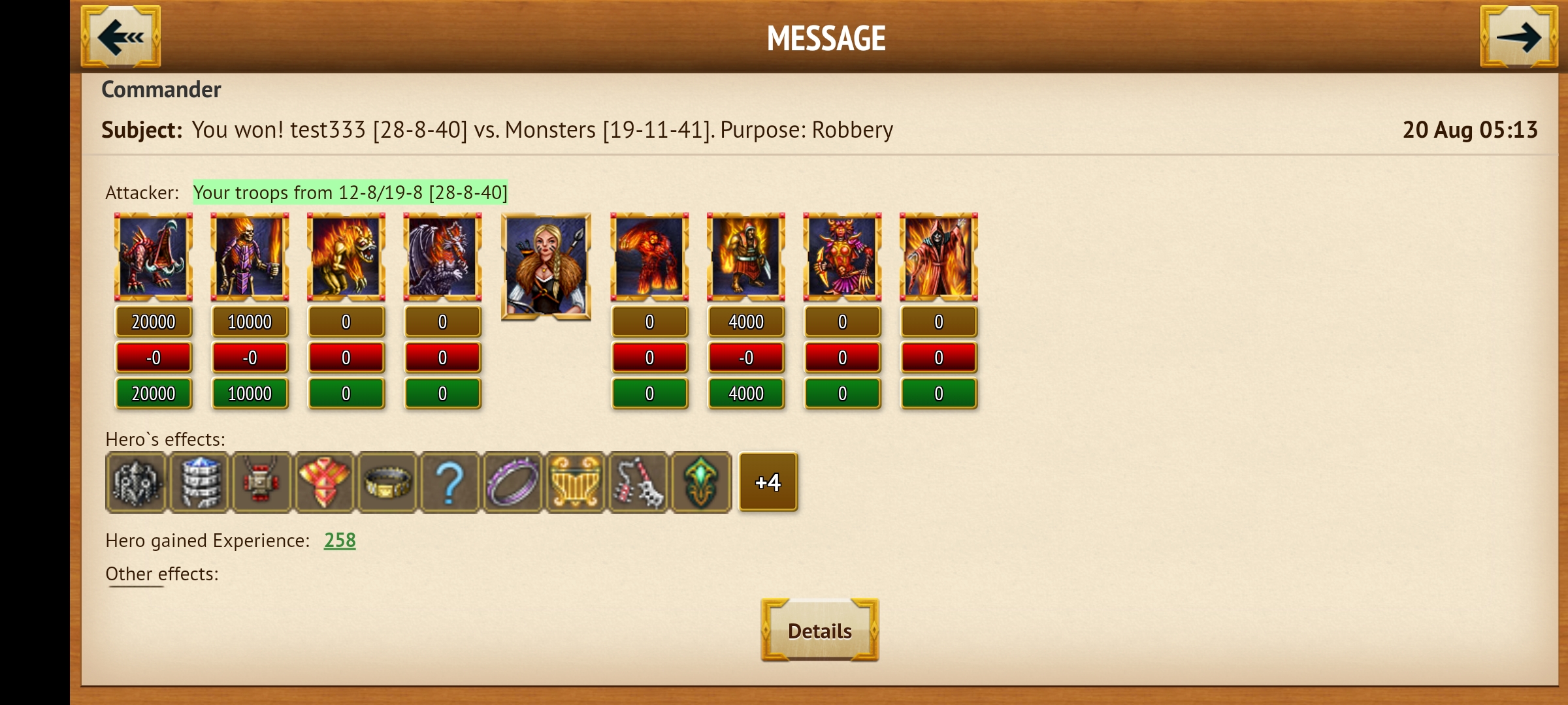 After forty-seven minutes of attack, the army reached the area where the monsters were located. The army showed a great fight against the monsters The monsters said they would not surrender. This war was now a battle for life and death. The war between the king's armies and the beasts has begun. Despite the courage of the king's soldiers, the monsters had no leader. The monsters were fighting irregularly against the king's soldiers, causing turmoil among themselves. The king's army turned this into an opportunity. With the commander's sword and armor, he cut off the heads of the strongest of the monsters and gave courage to his soldiers. The battle continued quite bloody until the Army Commander captured the last monster. All but one of the monsters were killed.