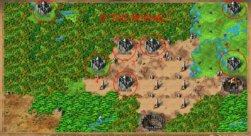 That is pretty bad. It happens around me too, but I have more low level players so they disappear over time. I thought thats why they spawned there, but those kingdoms all seem empty no players around. The game should spawn ruins according to what players are nearby I think.