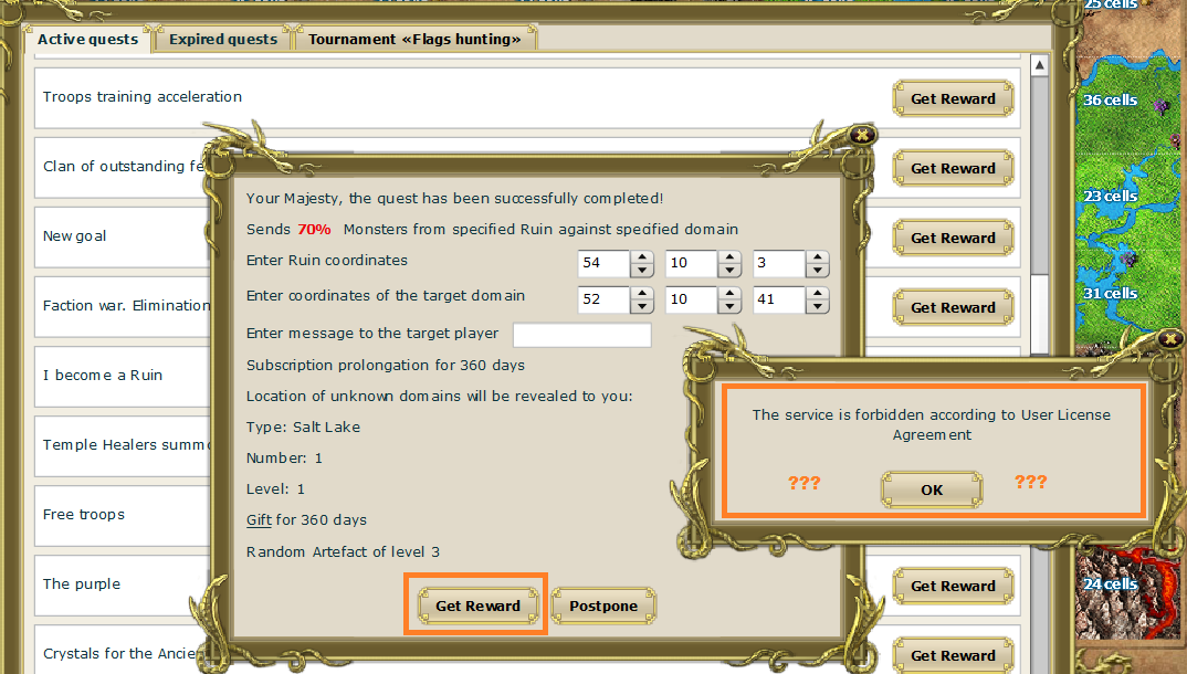 Now I'm trying to turn in the Faction War quest for +360 days of Subscription account and a Tier 3 artifact, but the game won't let me!