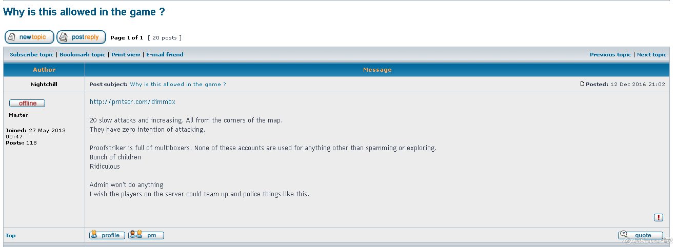 And since admins seem to be unable to stop the multiboxers, we would expect they would at least try to counter some of the consequences.. and in fact above suggestion is one that might do that at least a bit. But i guess sensible suggestions should always be ignored.