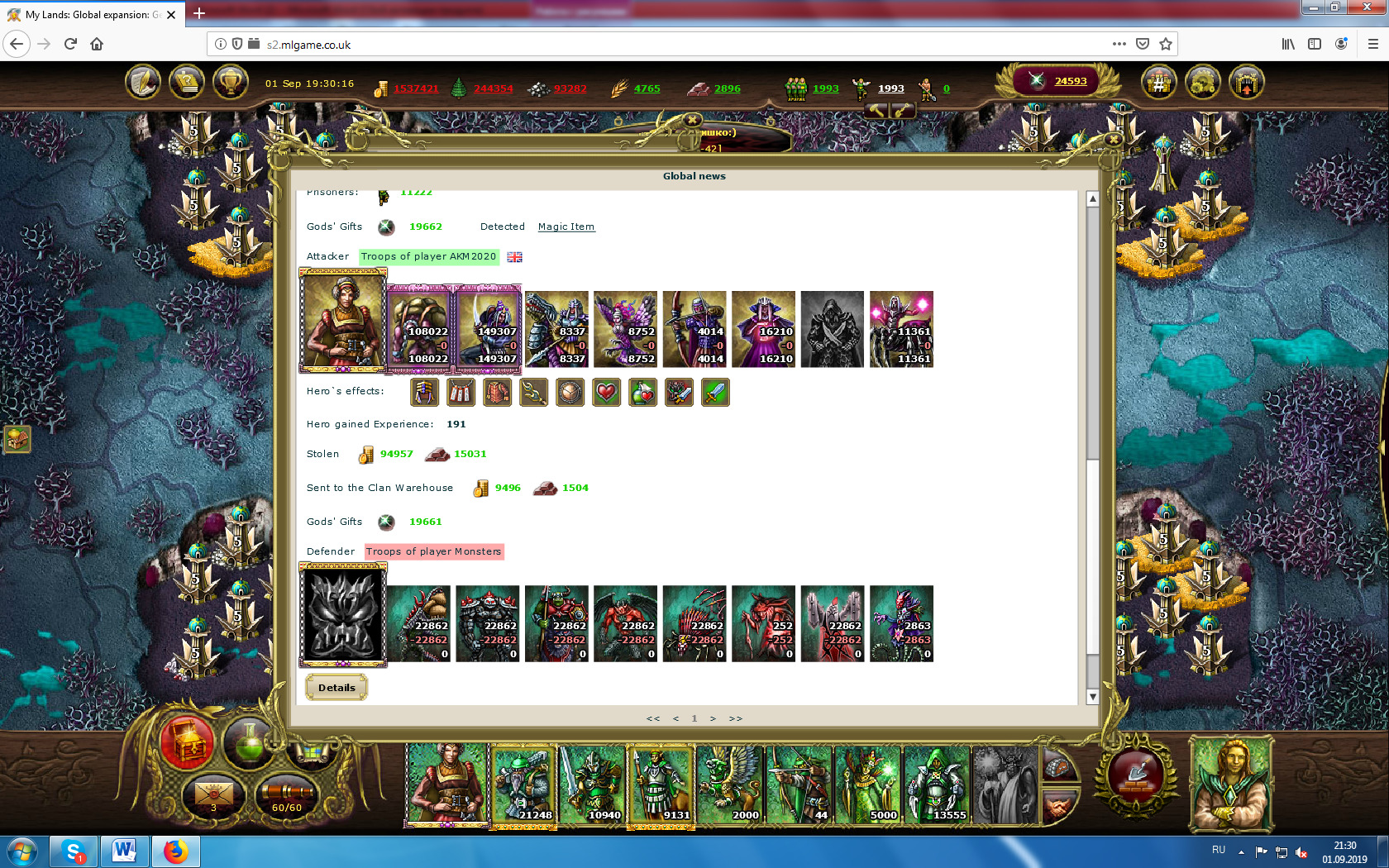 Войска во главе с предводителем уже построились в шеренги и рвутся в бой. Быстренько им нахожу цель в виде руинки 6-го уровня)) с криками "Да здравствует ML" арма устремляется вперед за ординами на полчища монстров.
