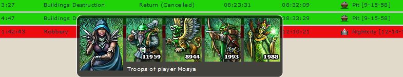 Well. Today Tampliers tryed to attack clan warehouse of Hydra (revenge?). Attack failed and Mosya's army with hero is now going home with mission "escape". I think the time to get home is around 12-15 hours, or more.
