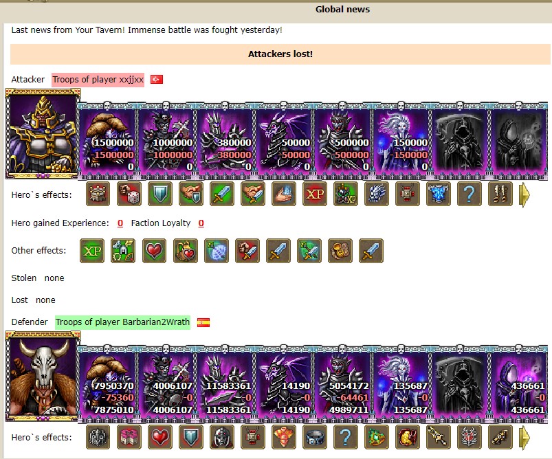 I think i understand you well, as a matter of fact i didn't said you cannot write on this post,all the contrary, i invited you to accommodate and post some of your great battles, as i see a player with a hero ranked in the great 6 position in the main rank i assume there are a lot of battles to see for gaining such position and since you are congratulating us i would like to exchange this and maybe learn from a top player as you ))toros5 wrote:This is game forum, not North Pole forum, and everyone is free to comment what they want, just to keep some rules, and I think I wrote exactly where I wanted and on topic - congratulated for battles after posts for battles... This is off topic now, but only to explain if someone didnt understand me...