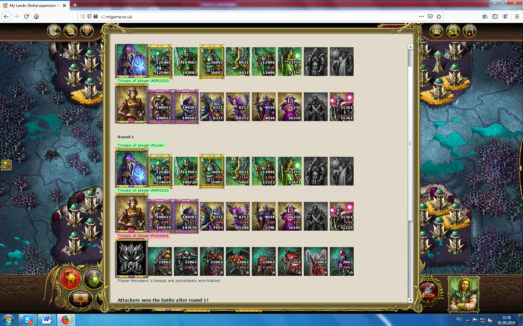 Войска во главе с предводителем уже построились в шеренги и рвутся в бой. Быстренько им нахожу цель в виде руинки 6-го уровня)) с криками "Да здравствует ML" арма устремляется вперед за ординами на полчища монстров.
